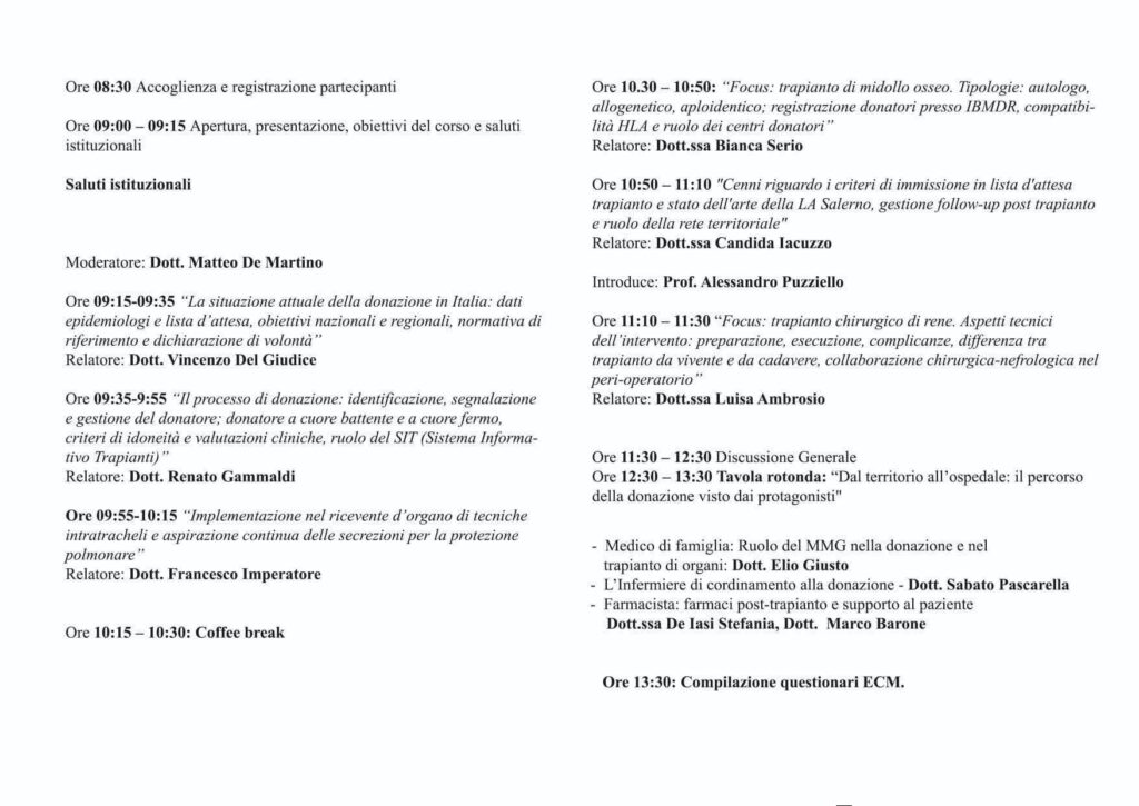 Il convegno ECM rappresenta non solo un momento formativo, ma anche uno spazio di dialogo e condivisione di esperienze, con l’obiettivo di rafforzare la cultura della donazione e migliorare la qualità dell’assistenza sanitaria.